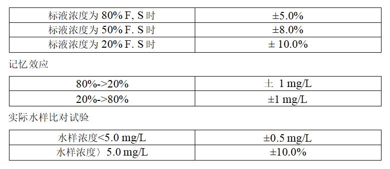 測定下線:0.5mg/L(示值誤差±30%)零點漂移:±5.0%